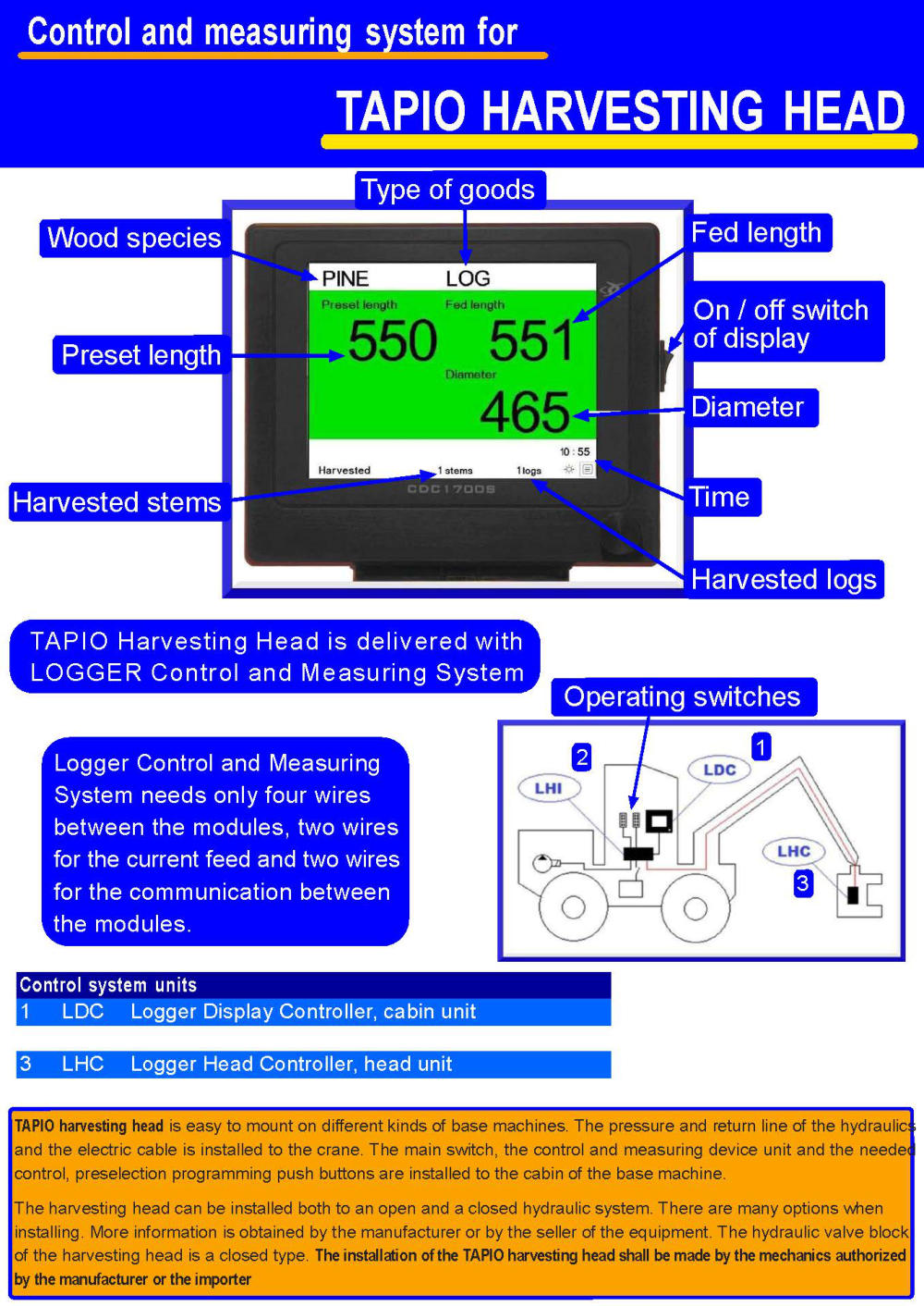 Tapio Stroke harvesters are equipped with the professional "Logger-Control" harvester control system, this system