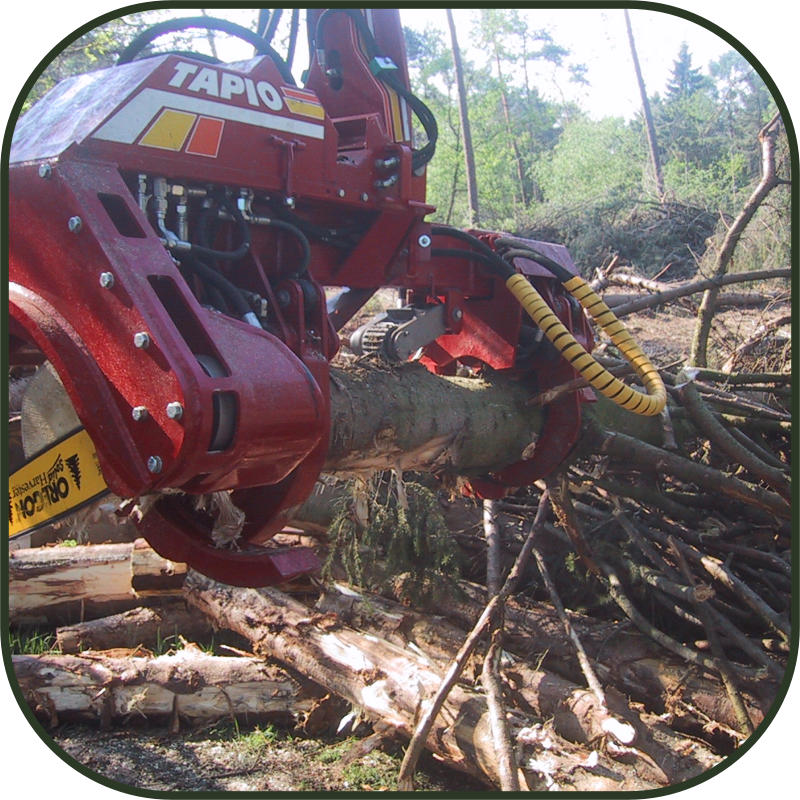 TAPIO HARVESTER - Best price-performance ratio- High delimbing force- Pre-selection program for variety and shape- Extremely easy operation- Low weight- Low hydraulic power requirements- Best delimbing results- Easy control of the felling direction- Logs can be picked up from the ground