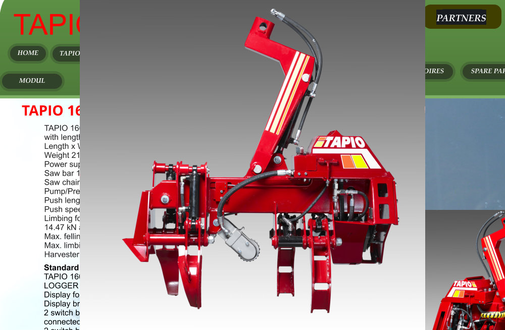 TAPIO 160 Stroke - Harvesterwith length and diameter measurementsLength x Width x Height 1030 x 550 x 630 mmWeight 215 kgPower supply 12/24 V DCSaw bar 12” 1.6 mmSaw chain .404” 1.6 mmPump/Pressure 1500 rpm 40–60 l/min 160 barPush length 500 mmPush speed 0.75 m/secLimbing force 12.86 kN at 160 bar14.47 kN at 180 barMax. felling diameter 250 mmMax. limbing diameter 200 mmHarvester power requirement 15 kW